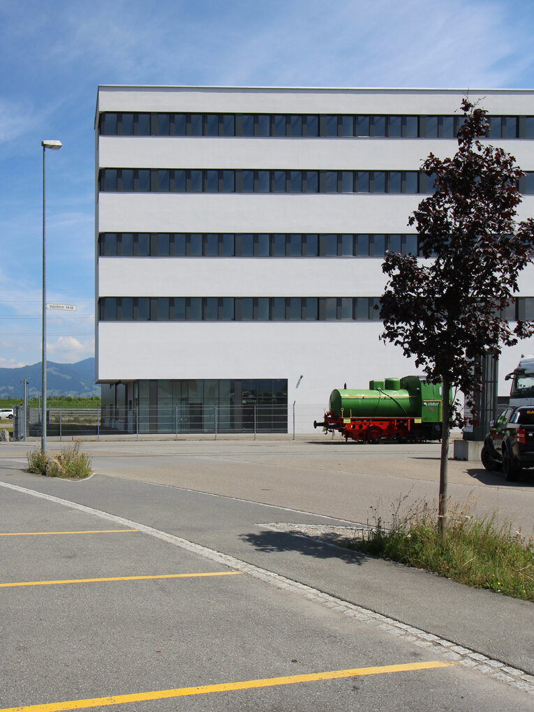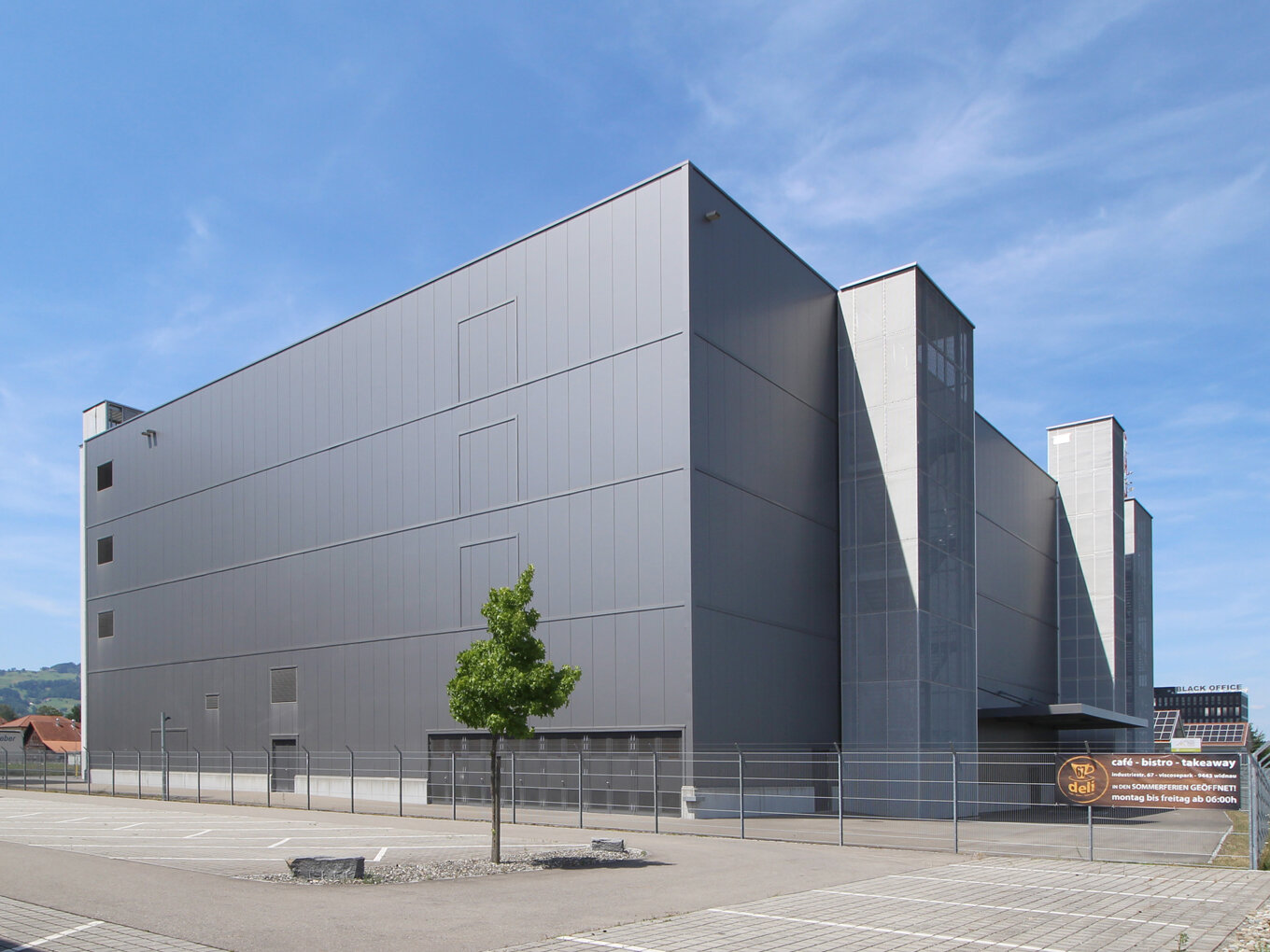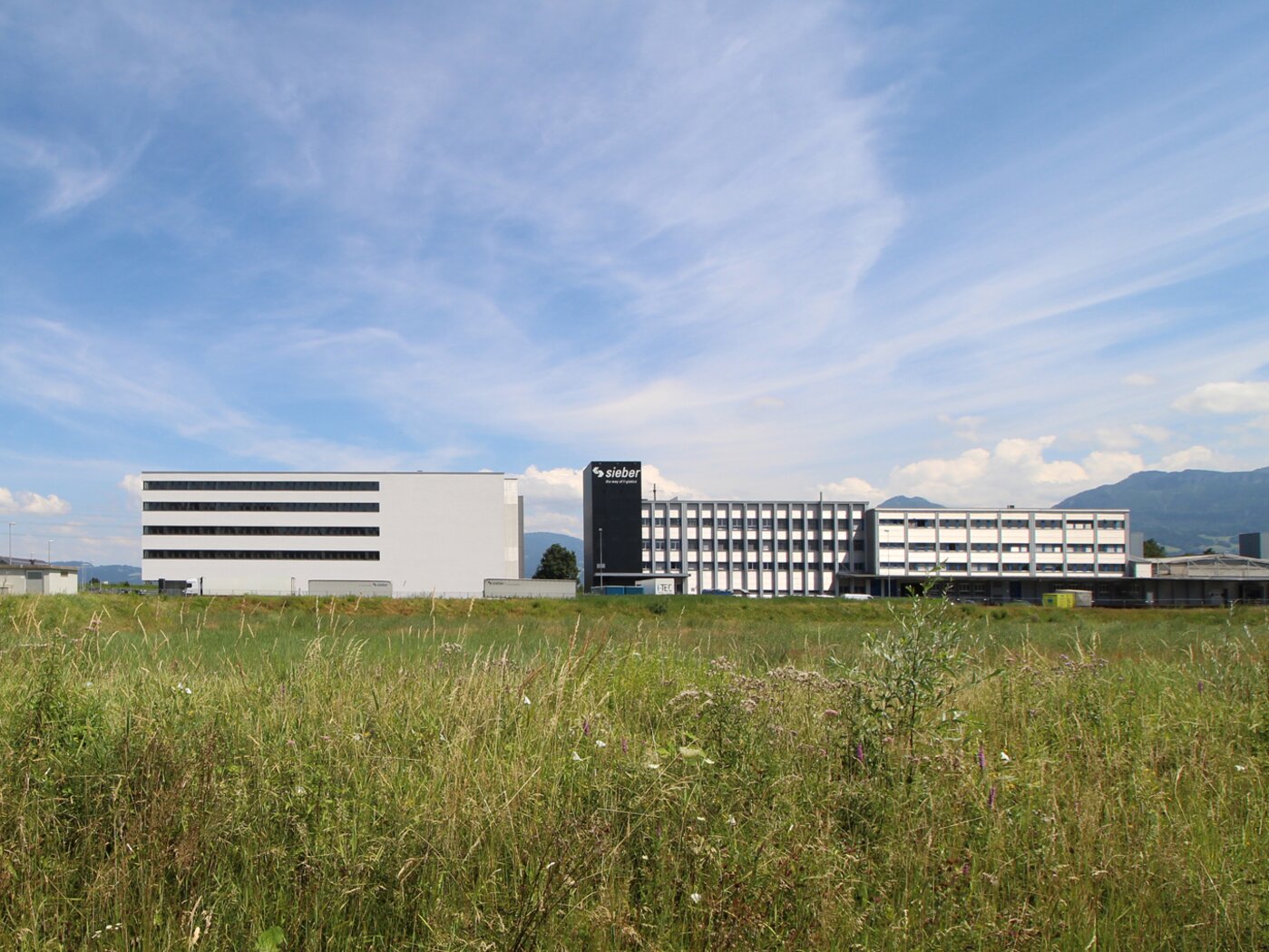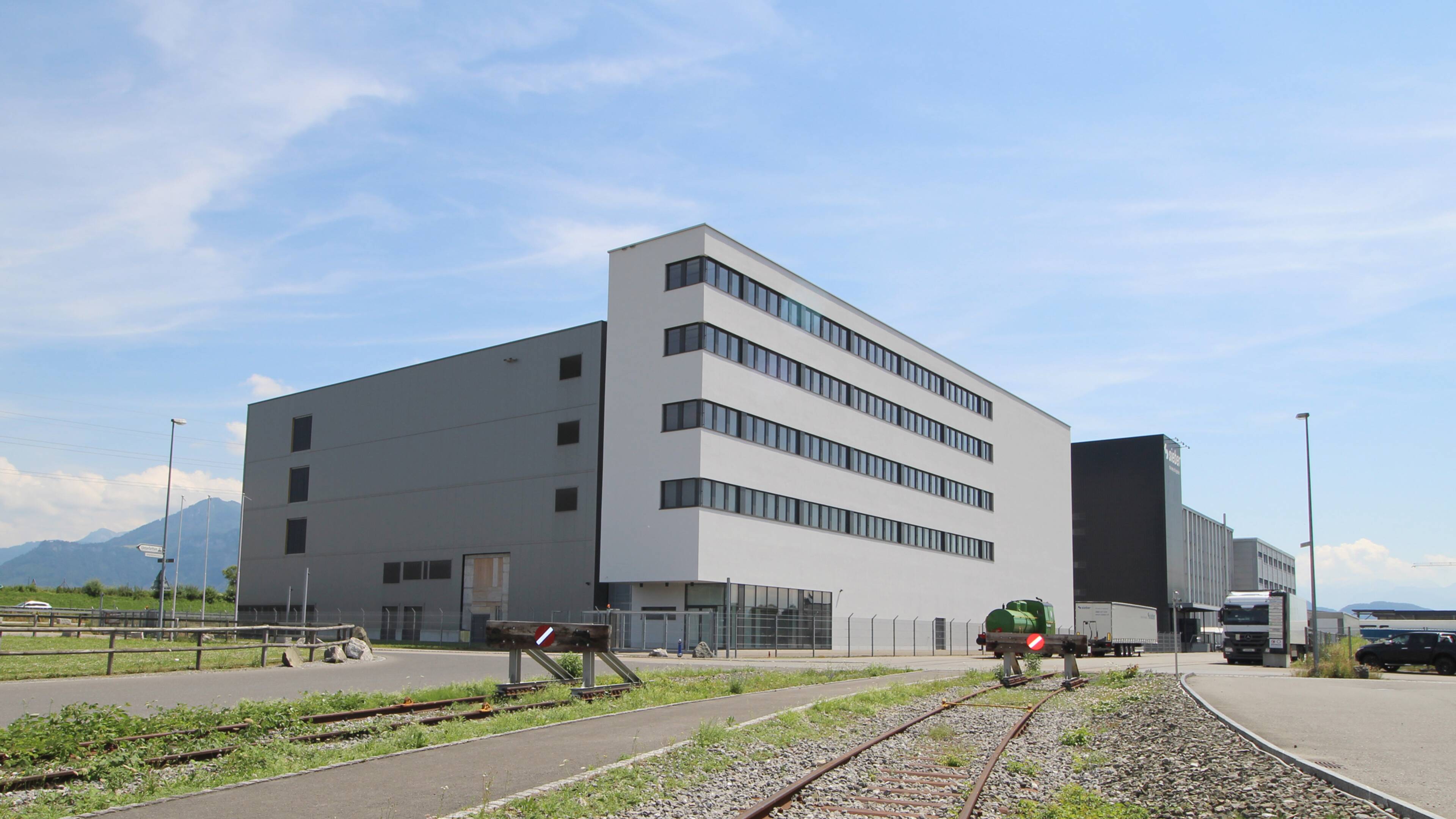 Das Data Center steht im Widnauer Viscose-Industriepark, leicht zurückversetzt und doch prominent sichtbar von der Autobahn A13.