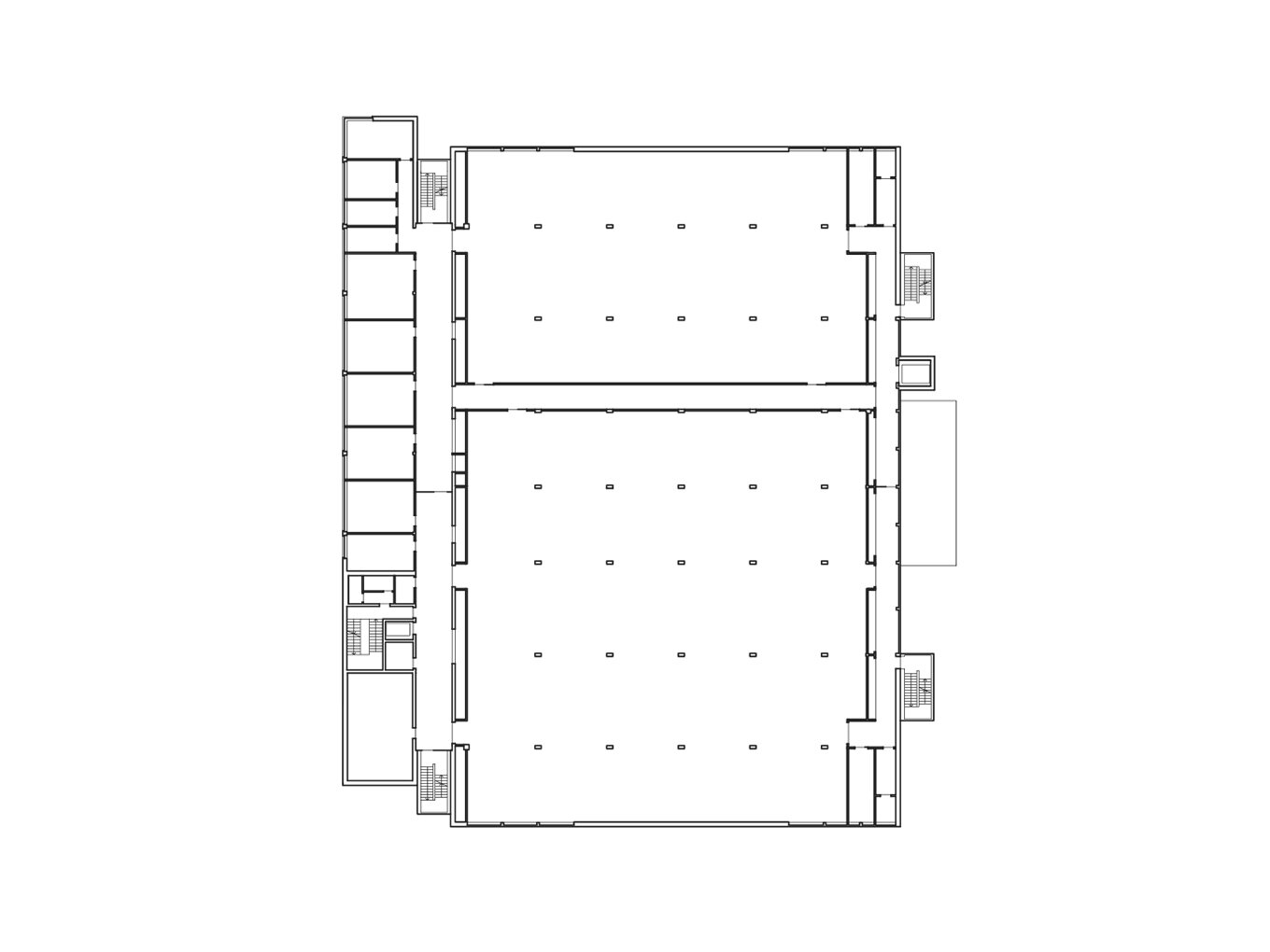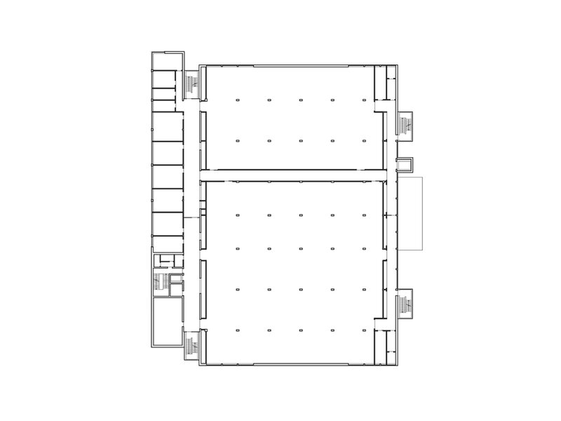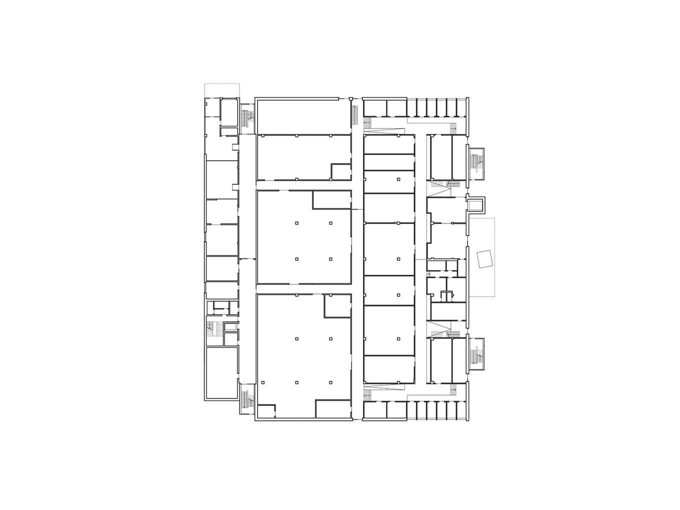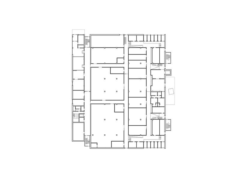 Im Erdgeschoss des Bürobaus befindet sich die Empfangs- und Sicherheitsloge. Über eine Sicherheitsschleuse gelangt man in den Erschliessungsbereich, der zwischen den Büroräumen und die Cacheräumen liegt.