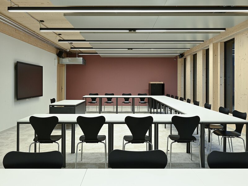Der Neubau ist ein Erlebnis. Grosszügige Räume, eine klare Gestaltung, wenige Materialien sowie eine spannende Beleuchtung setzen den Menschen und die Natur in den Mittelpunkt.
