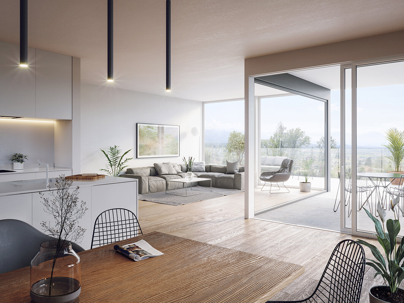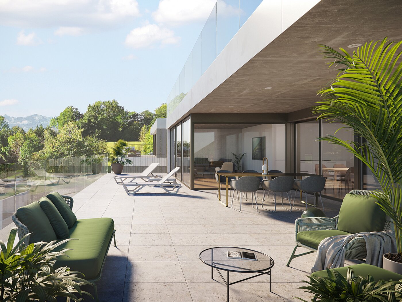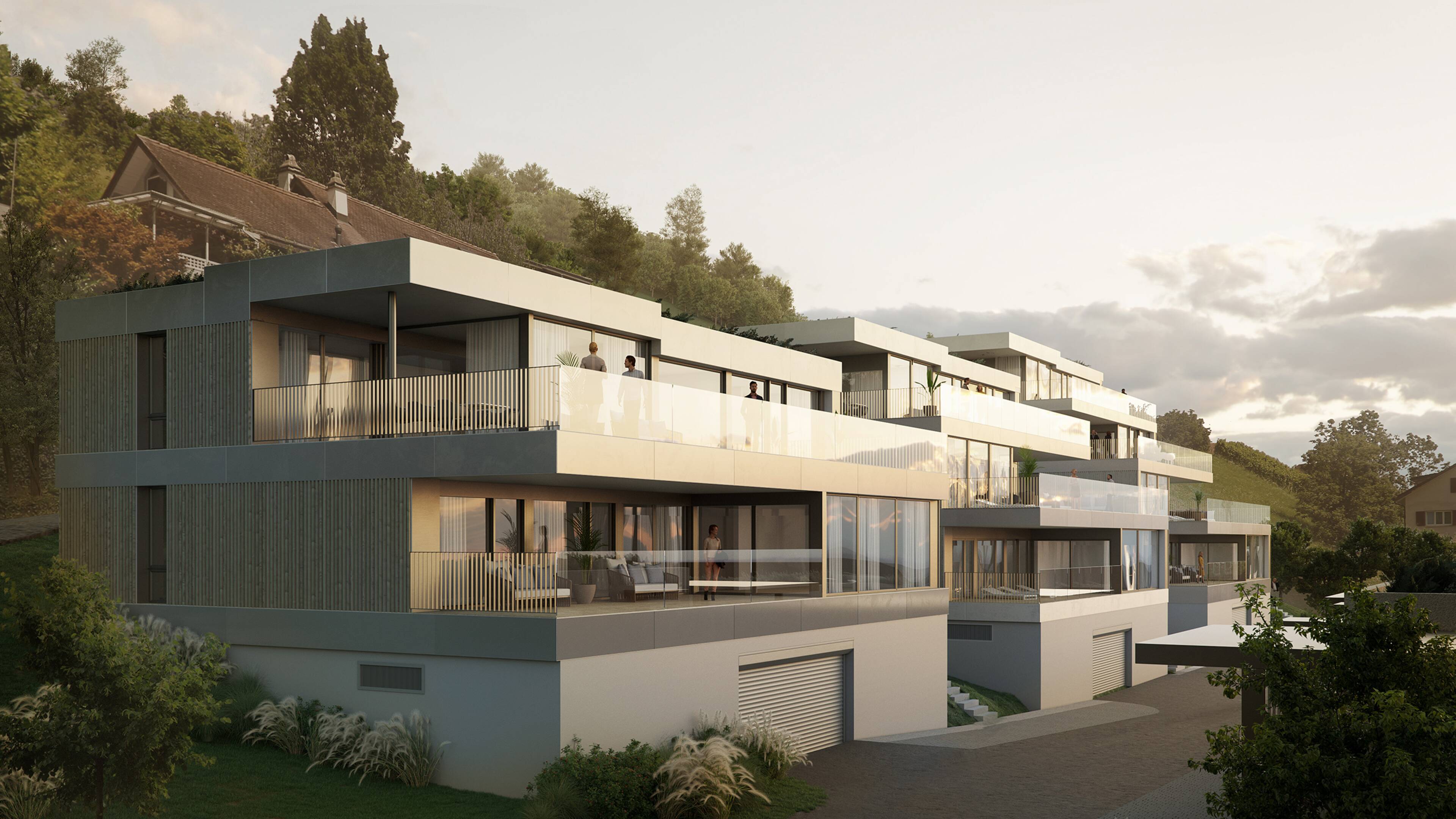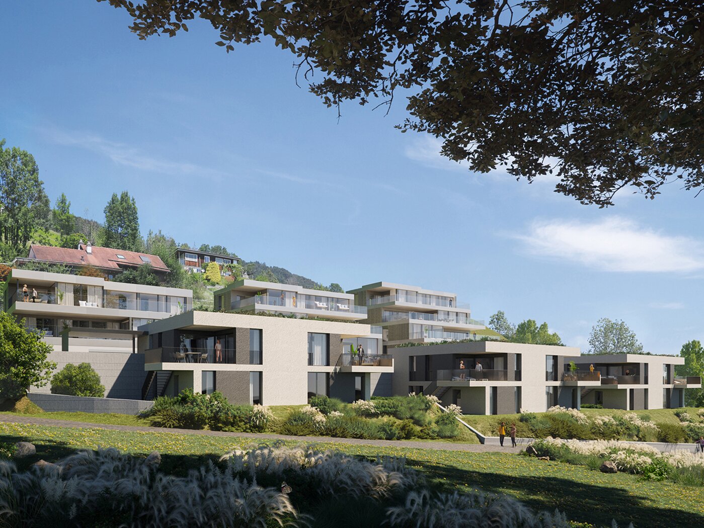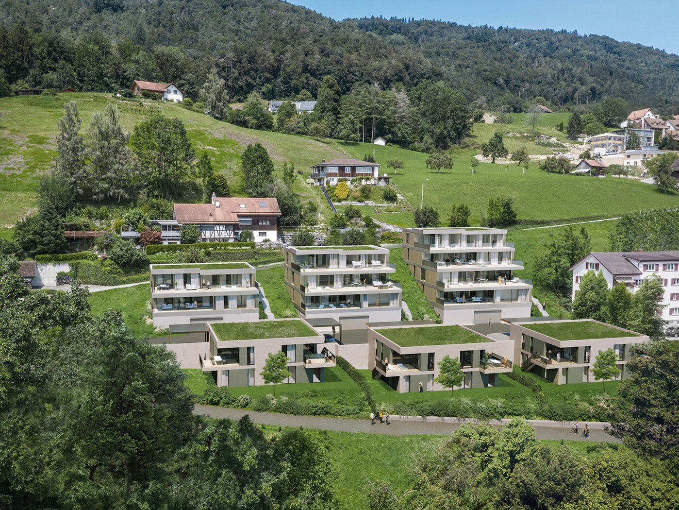 An der Sonnenbergstrasse entstehen sechs familienfreundliche Doppeleinfamilienhäuser und neun attraktive Terrassenwohnungen. Der Name offenbart, was die neun Terrassenwohnungen und sechs Doppeleinfamilienhäuser auszeichnet – Leben und Wohnen mit einer traumhaften Fernsicht mitten im Naherholungsgebiet.