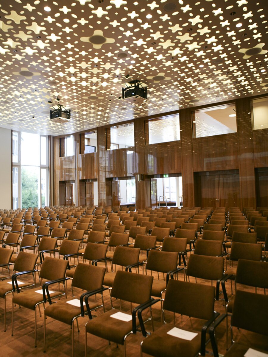 Mit dem neuen Congresszentrum wurde das bestehende Hotel durch einen Fitness-Spabereich, 14 kombinierbare Seminar- und Tagungsräume für bis zu 440 Personen sowie dem Einstein Parking mit 247 Parkplätzen ergänzt.