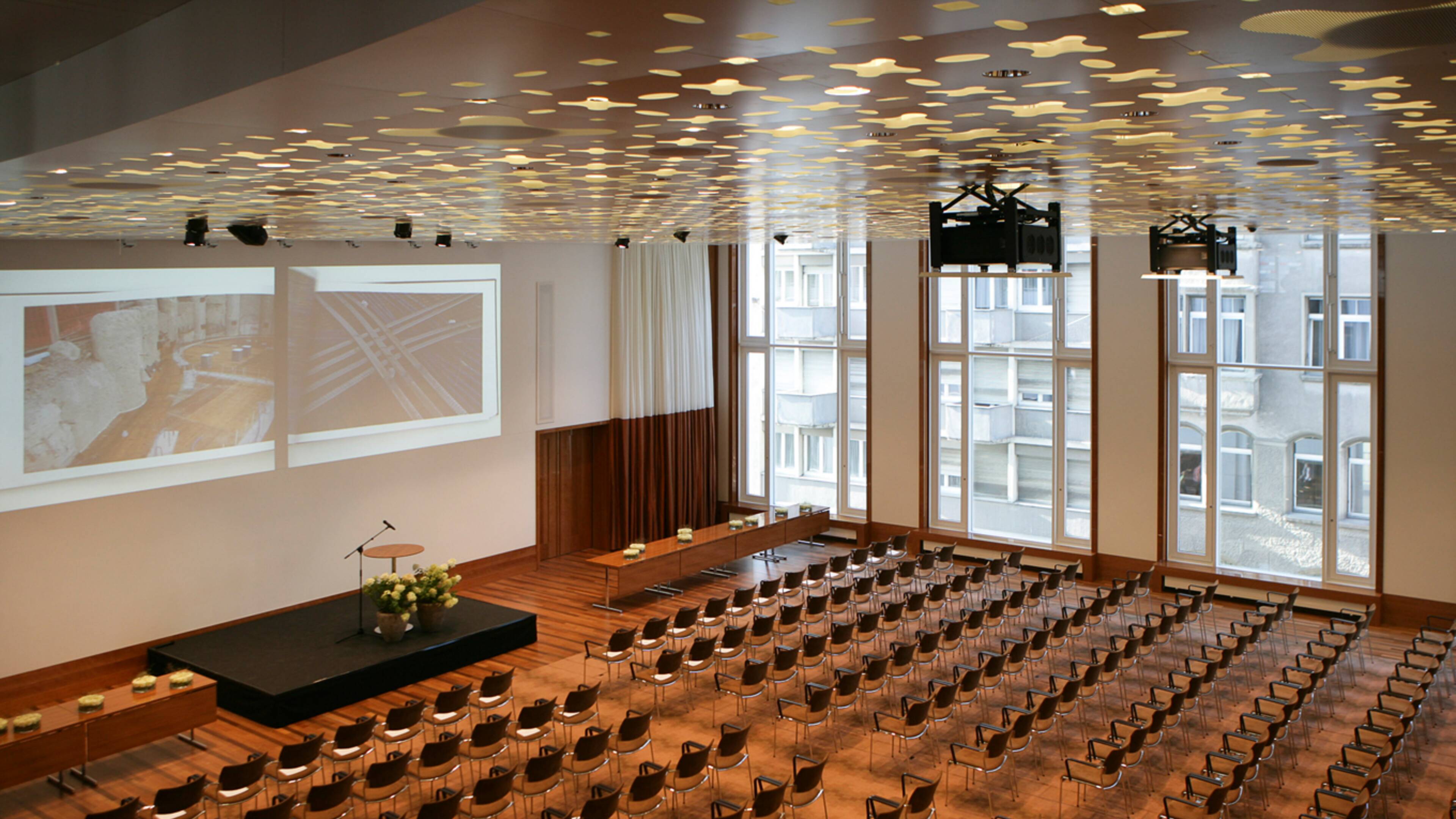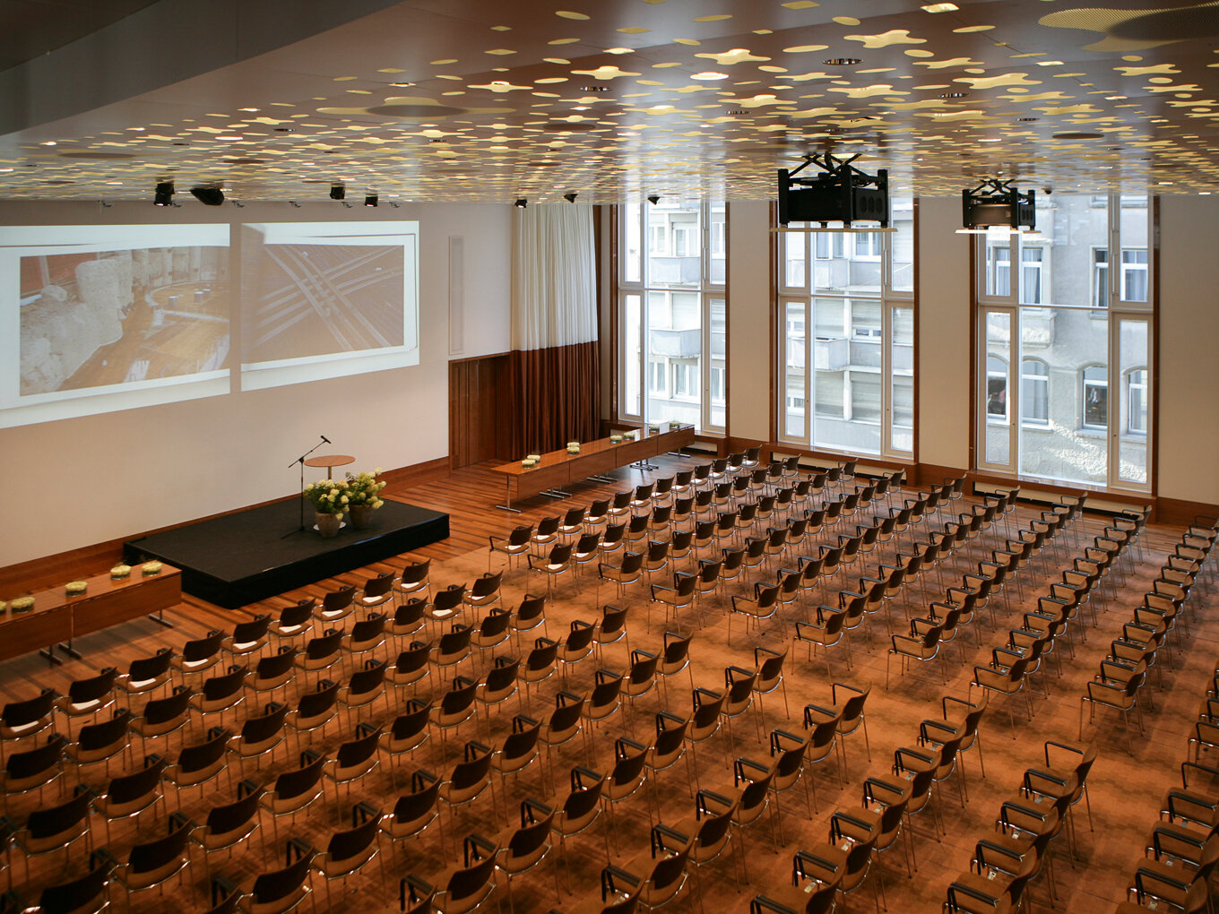 Im Erdgeschoss befinden sich Empfang, Information, Restaurant und Café. In den oberen Geschossen befindet sich der Einstein Saal mit einer eindrücklichen Höhe von sechs Metern sowie das vorgelagerte Foyer im ersten und zweiten Geschoss. In der dritten und vierten Etage befinden sich weitere Tagungsräume. Im obersten Geschoss wurden Suiten realisiert, die über längere Zeiträume gemietet werden können.