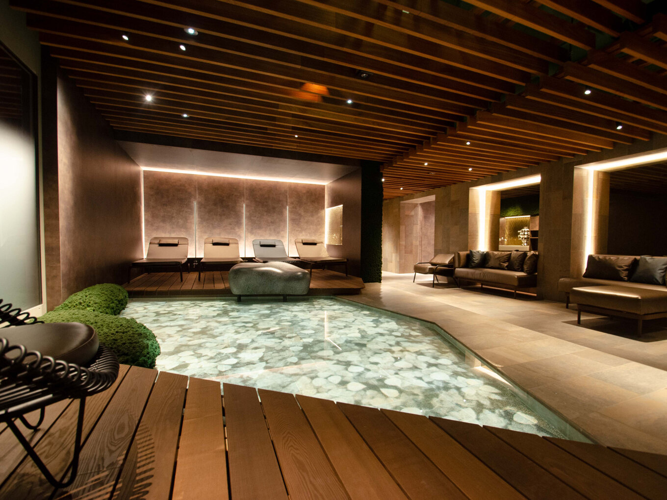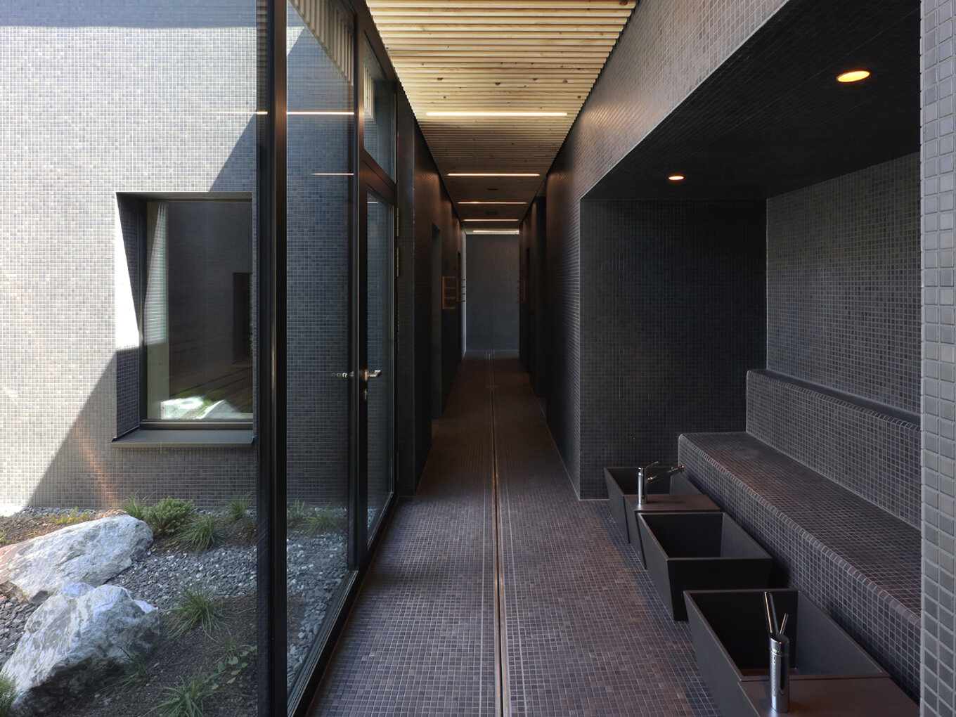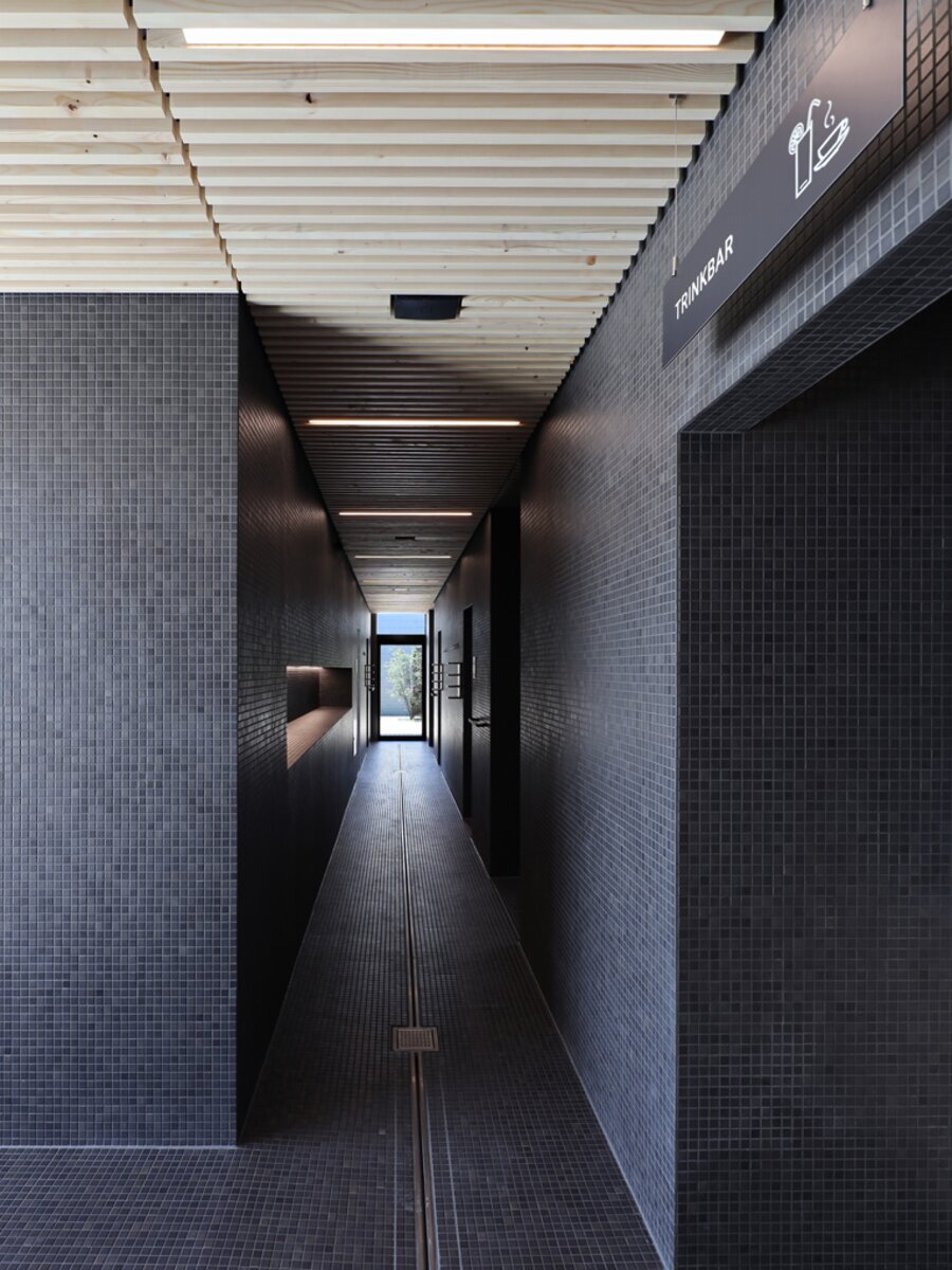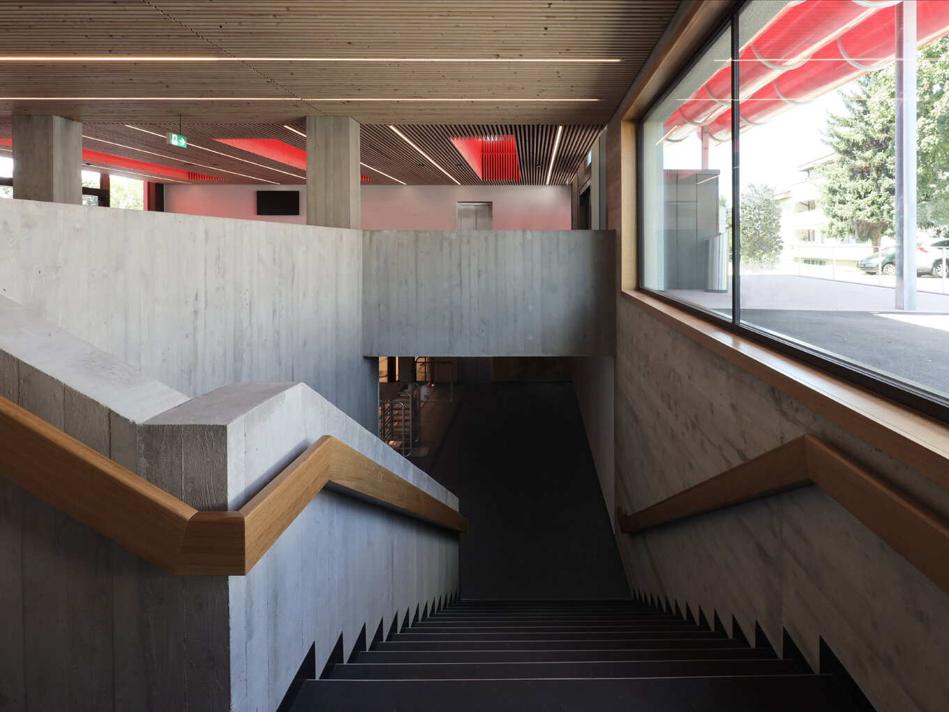 Der neu gestaltete Eingangsbereich dient als zentrale Drehscheibe, welche das Hallenbad, die Sauna- und Wellnessanlage, das Bistro sowie das Freibad erschliesst. Westseitig wurde die Anlage, unter Berücksichtigung des bestehenden Gebäuderasters, um einen Wellnessbereich mit Saunahof erweitert. Garderoben, Duschen und Nebenräume erfuhren eine Reorganisation und sind nun behindertengerecht zugänglich. Die gesamte Haus- und Badewassertechnik wurde ersetzt. Ein besonderes Highlight stellt das neue Warmwasser-Aussenbecken dar, das durch eine Schleuse vom Hallenbad aus erreicht werden kann. Massageliegen und Sprudeldüsen bieten den Badegästen auch bei kalten Temperaturen Entspannung im Aussenbereich.
