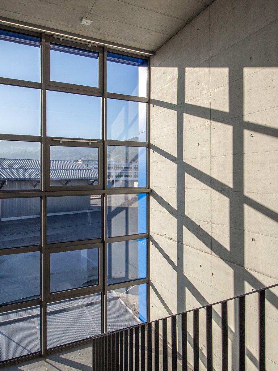 Die Einbindung in den laufenden Betrieb sowie die Umsetzung des Energie- und Sicherheitskonzepts stellten zentrale planerische Herausforderungen dar. Eine Sole-Wasser-Wärmepumpe in der neuen Technikzentrale versorgt das gesamte Areal über 60 Erdwärmesonden à 205 Meter. Ergänzend erzeugt eine PV-Anlage auf Dach und Fassade, kombiniert mit einem Salzbatteriespeicher, erneuerbare Energie.