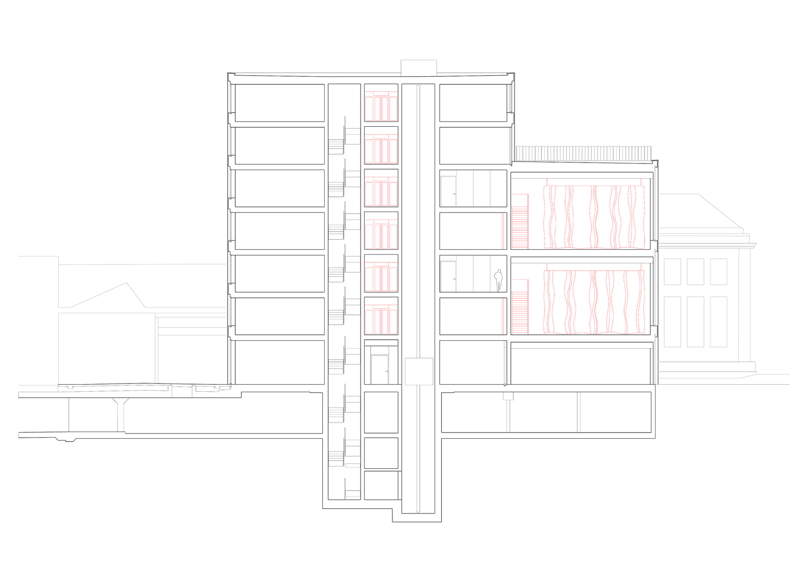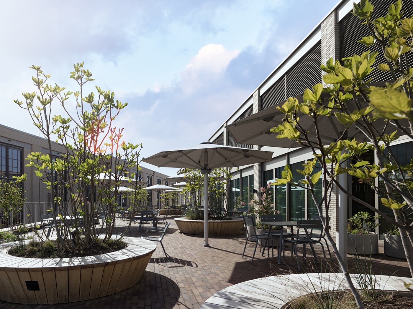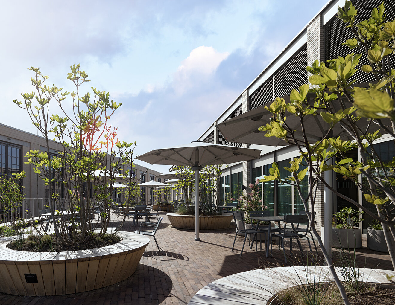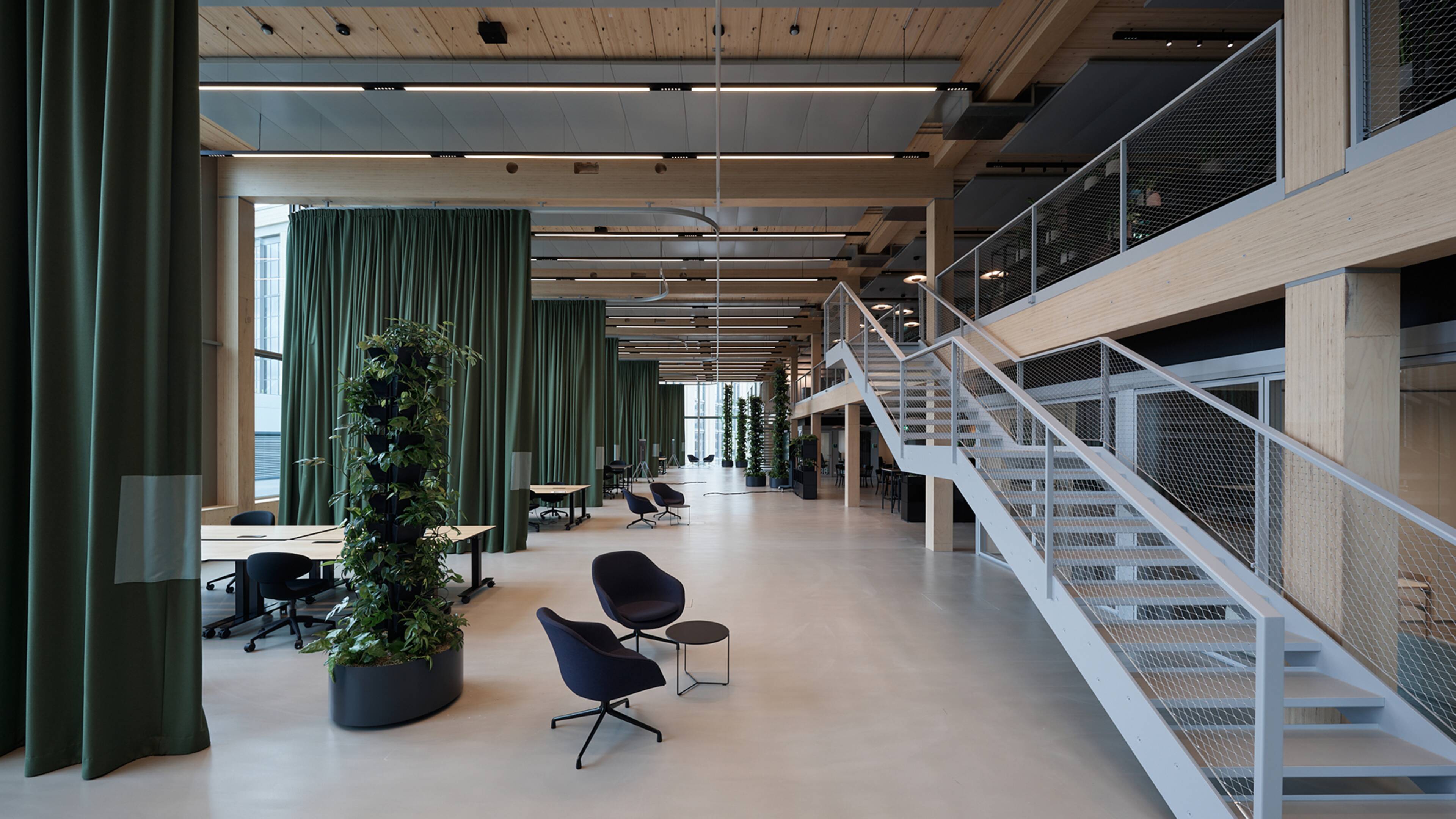 Auf einer Fläche von rund 11’000 m2 entstanden rund 500 attraktive und moderne Arbeitsplätze. Es stehen den SWICA Mitarbeitenden neben den ergonomischen Arbeitsplätzen auch Fokusräume, unter-schiedlichste Sitzungszimmer, Cafeterias und gemütliche Terrassen zur Verfügung. In den zwei überhohen Hallen entstanden Zonen für Projekt- und Kreativarbeit, welche durch raumhohe Vorhänge unter-teilbar sind. Im Erdgeschoss befindet sich das neue Schulungs- und Konferenzzentrum der SWICA. Die Kundinnen und Kunden werden im neu inszenierten historischen Portikus empfangen und beraten.