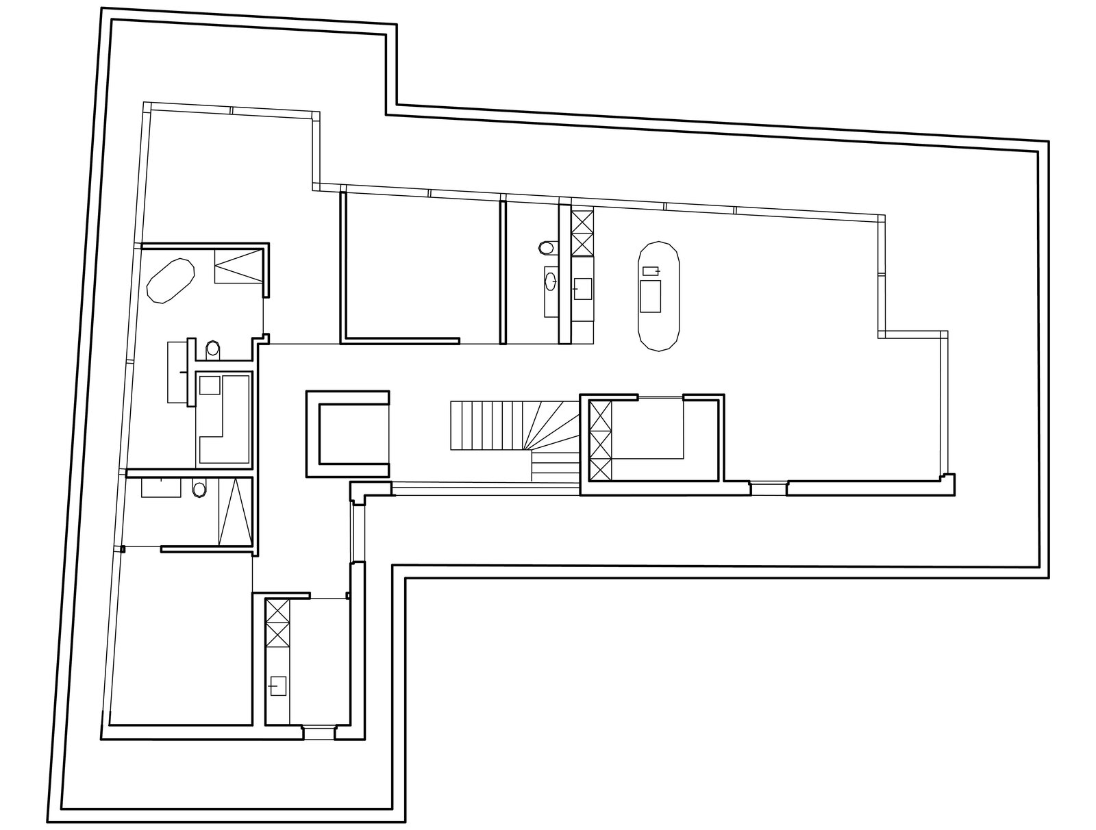 Der Massivbau besteht aus tragendem Treppenkern und Betonwänden. Die Innenwände sind nicht tragend, was eine künftige Flexibilität ermöglicht. Eine nachhaltige Heizungs- und Kühlungslösung wurde durch Erdsonden sowie einer Photovoltaikanlage für die Energieerzeugung realisiert.