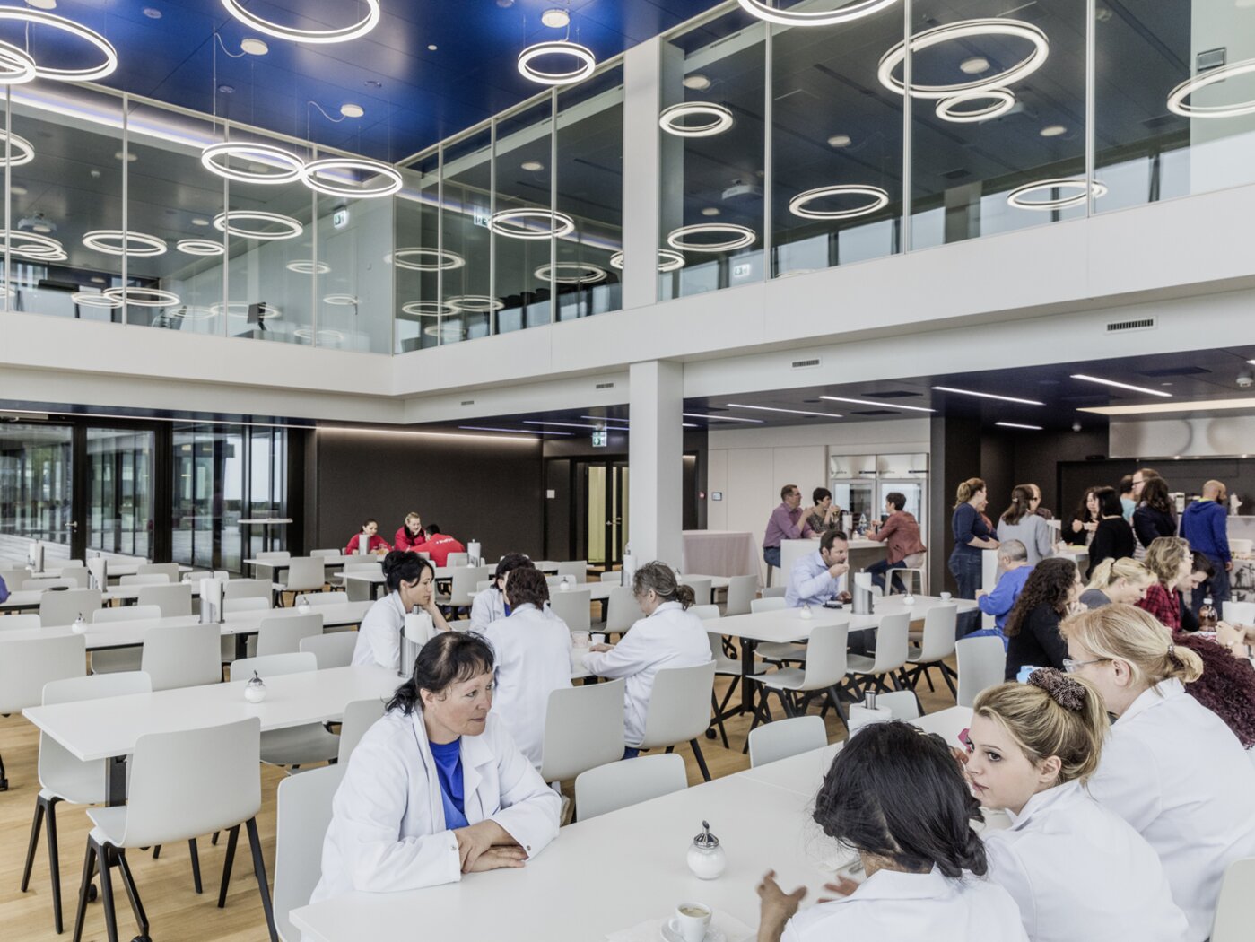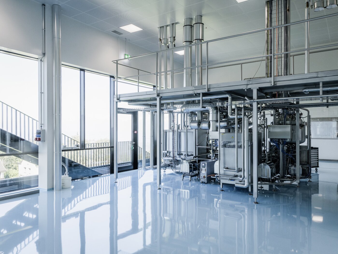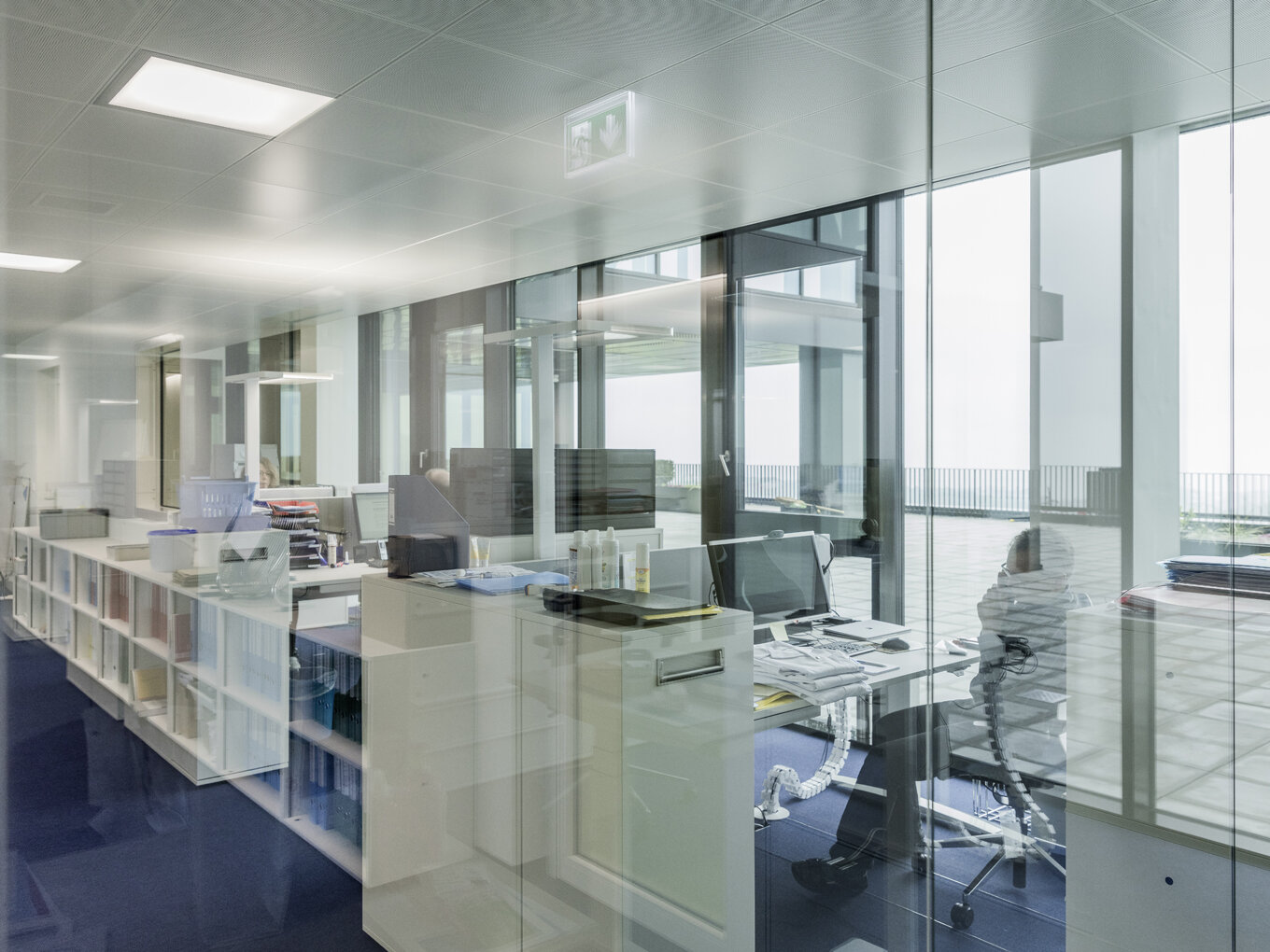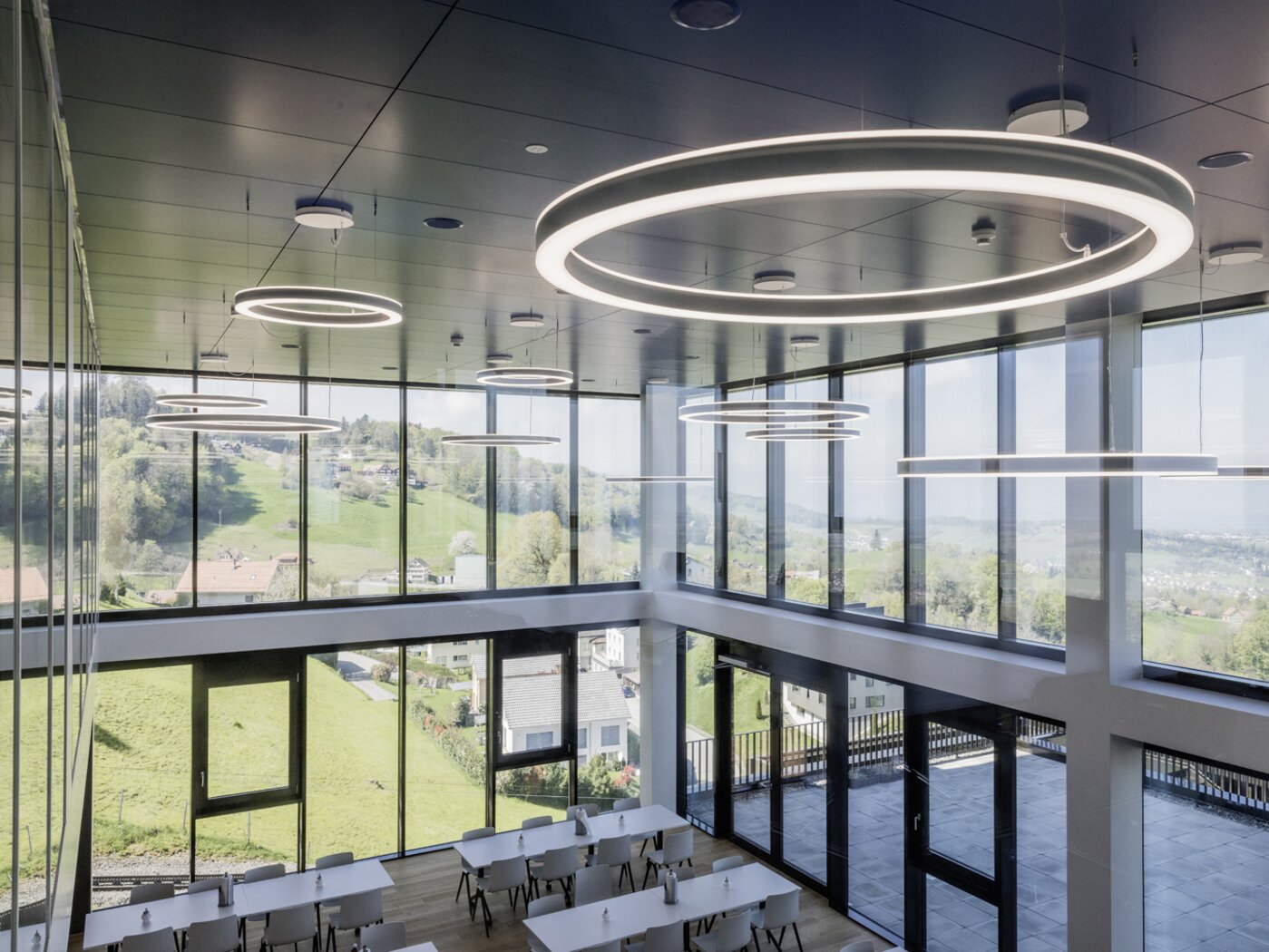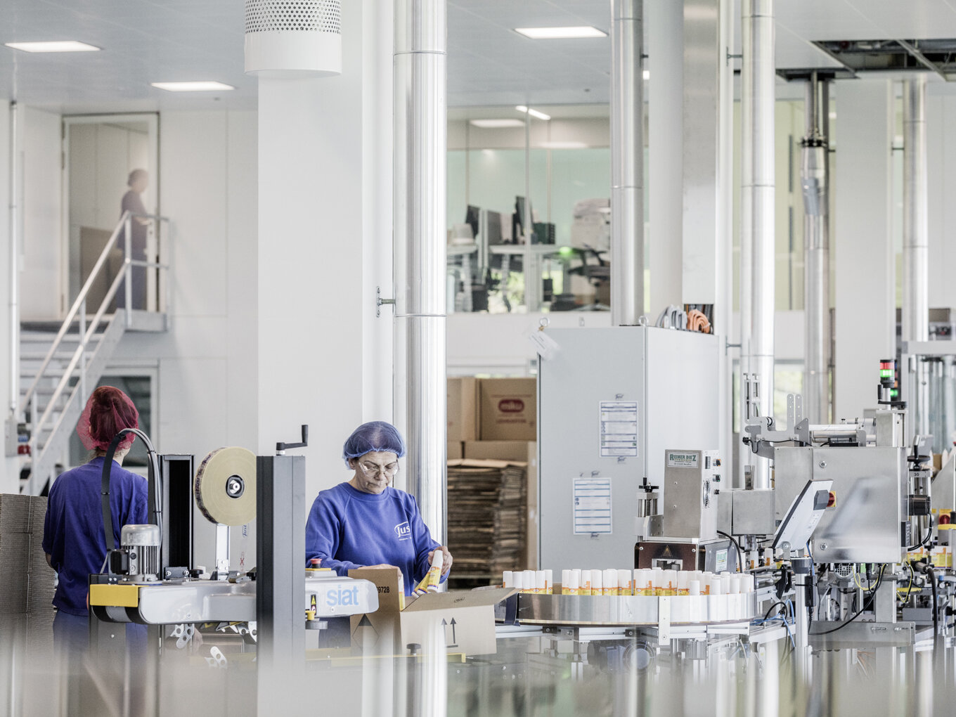 Der «Generationenbau» verfügt über drei Hauptgeschosse in denen Fertigprodukte in einer streng kontrollierten Produktion unter Reinraumbedingungen hergestellt und konfektioniert werden. Diese Räume sind nordseitig ausgerichtet und bieten einen wunderbaren Blick auf den Bodensee.