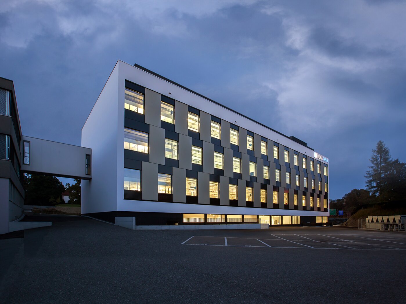 Nach einer intensiven Planungsphase und dem Abschluss der ersten Vorarbeiten, konnte die Ausführung des Neubaus beginnen. Das neue Gebäude ergänzt die bestehende winkelförmige Anlage in Richtung Süden. Neu- und bestehende Bauten werden durch eine Passarelle und einen unterirdischen Verbindungsgang erschlossen.