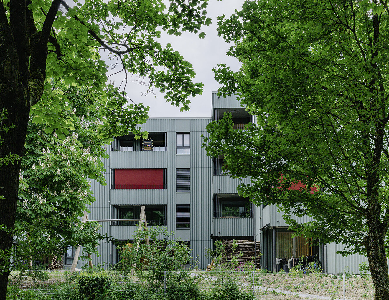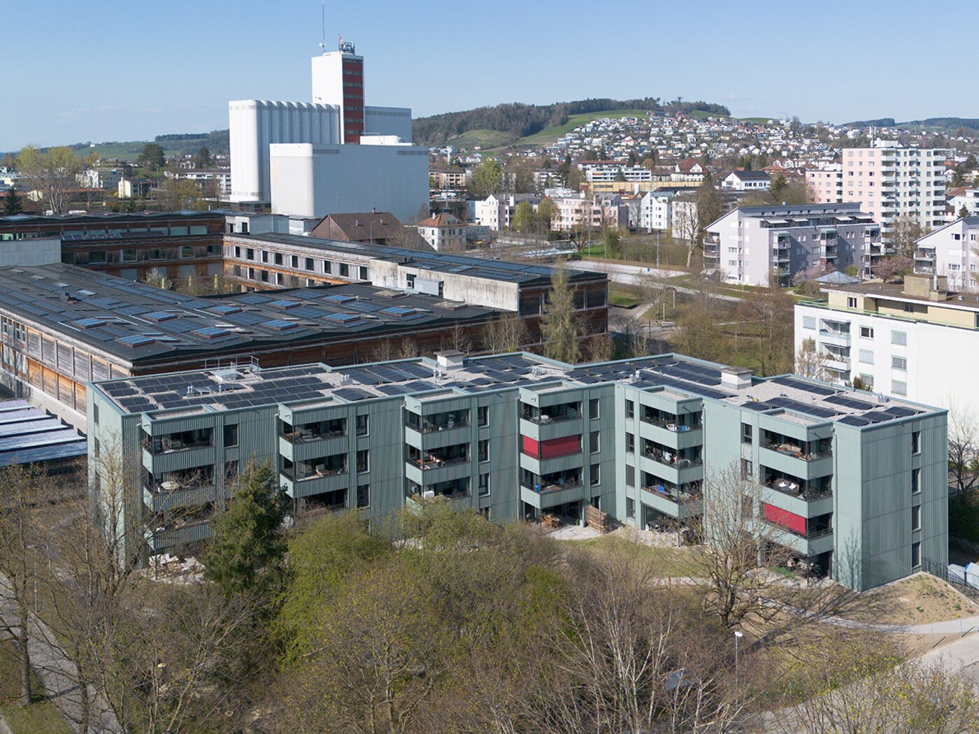 Im Auftrag der Asga wurden die drei Mehrfamilienhäuser, erbaut 1981, umfassend saniert. Ziel war es, die Gebäude energetisch zu optimieren, zu modernisieren und durch die Aufstockung in Holzbauweise vier weitere Mietwohnungen zu schaffen. Die Sanierung umfasste unter anderem die Erneuerung der Badezimmer und Küchen, den Austausch der Fenster sowie die Installation moderner, energieeffizienter Lifte. Zudem wurde die Gebäudehülle gedämmt und mit einer hinterlüfteten Konstruktion aus Eternitplatten versehen.