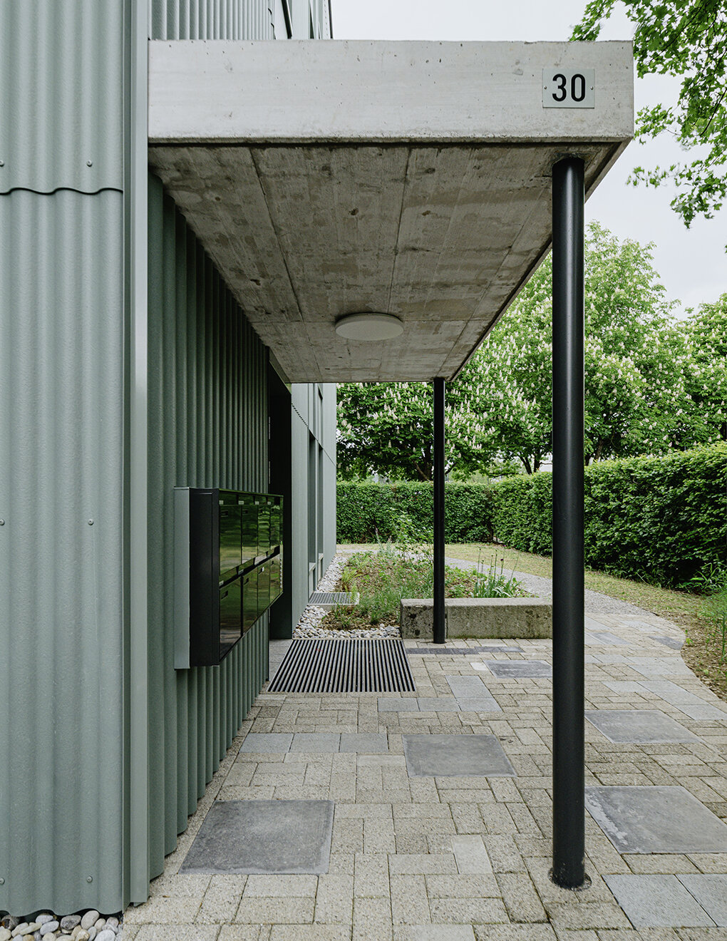 Die bestehende Öl-/Gasheizung wurde durch eine Sole-Wasser-Wärmepumpenanlage ersetzt und eine Photovoltaik-Anlage installiert. Die Balkone wurden vergrössert,die Beschattung ersetzt sowie alle Oberflächen erneuert. Der Aussenbereich wurde mit Recycling-Belägen und einer regionalen Bepflanzung naturnah gestaltet.