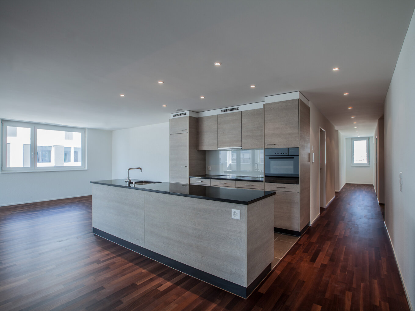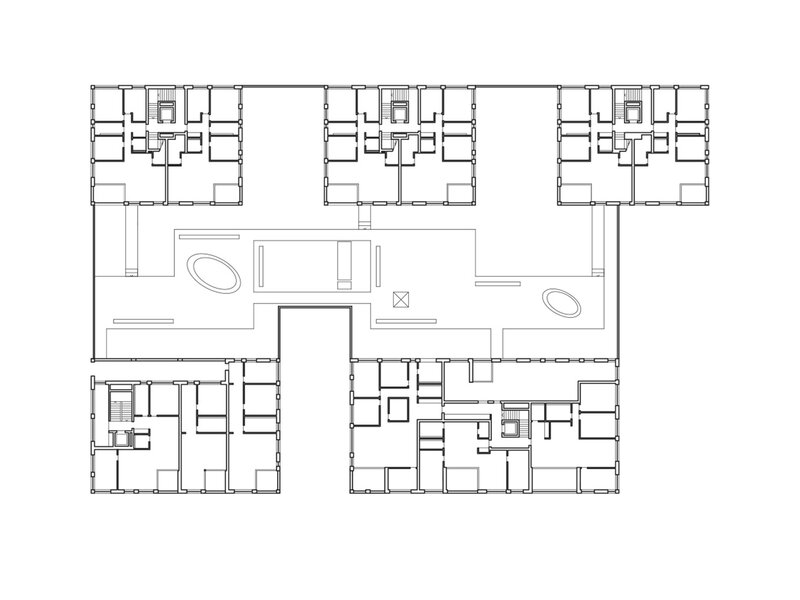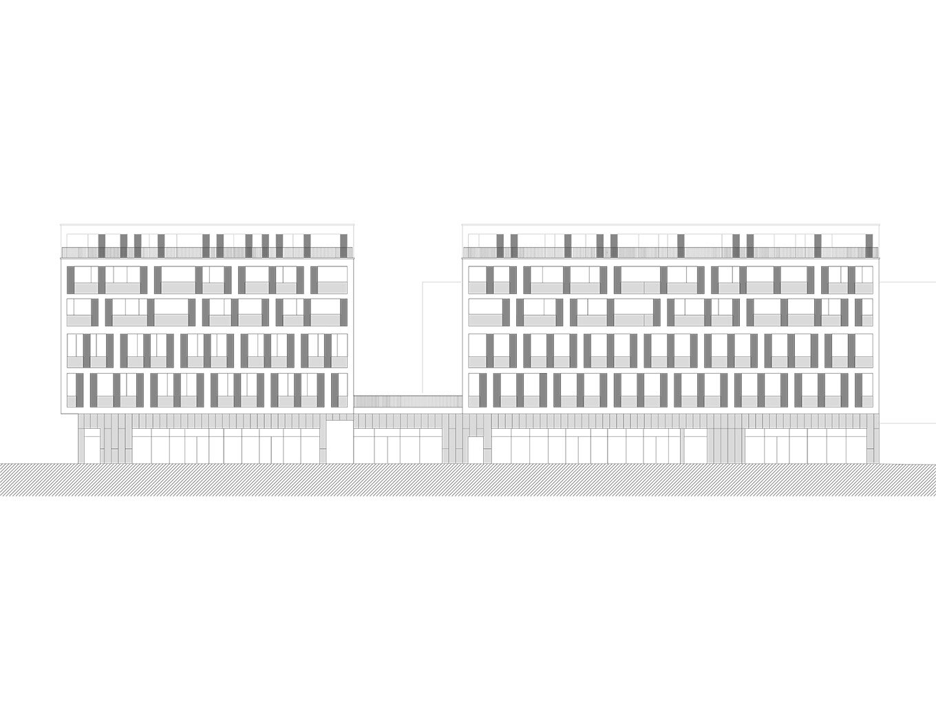 Im Erdgeschoss entstanden 2'940 m2 Verkaufsflächen. Darüber liegen 5 eigenständige Gebäude mit weiteren vier bis fünf Geschossen. Entlang der Bahnhofstrasse befinden sich in den oberen Etagen Büroflächen mit 2‘034 m2. In den Attikageschossen und in den drei hinteren Baukörpern entstanden 48 Wohnungen. Erschlossen werden die Gebäude durch eine gemeinsame Tiefgarage.