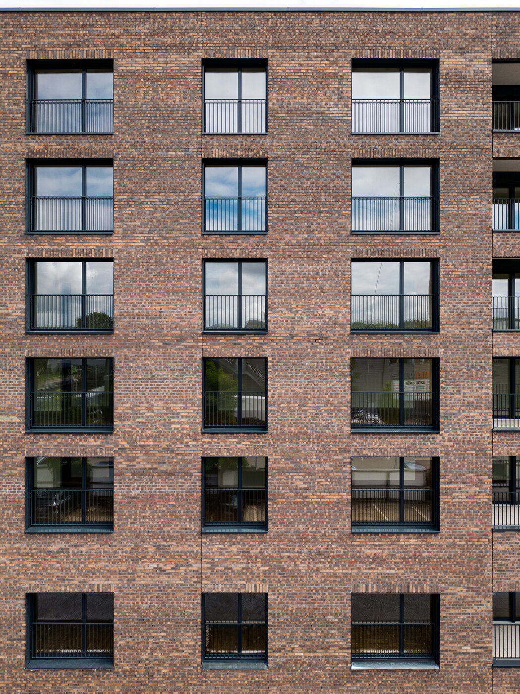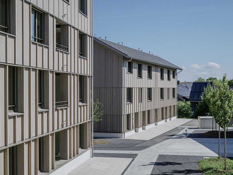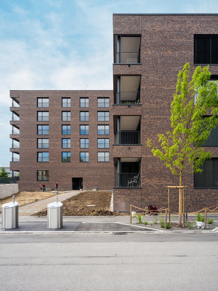 Im Innern nimmt sich die Materialisierung der Wohnungen bewusst zurück und bietet den Mieter*innen viel Freiheit bei der persönlichen Einrichtung. Von aussen überzeugen die Wohnhäuser durch die hochwertige Klinkerfassade und eine naturnahe Umgebungsgestaltung. Die Erdsondenheizung sowie die Photovoltaik-Anlage tragen zur Nachhaltigkeit der Überbauung bei.
