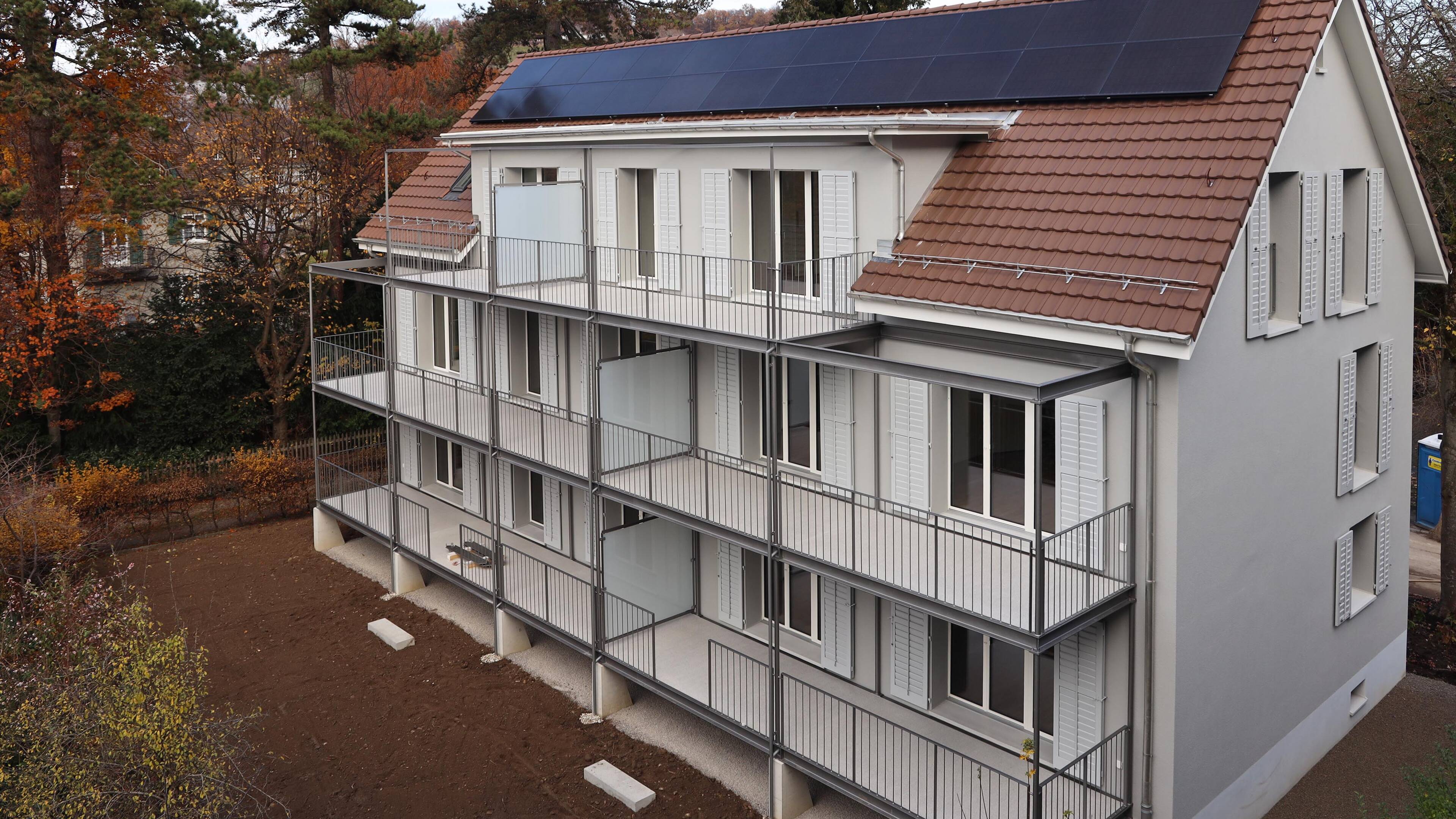 Nach einer Bauzeit von 11 Monaten konnte die umfangreiche Totalsanierung des 1943 erbauten Mehrfamilienhauses an der Adlerstrasse abgeschlossen werden. Die sechs Mietparteien erfreuen sich neu an modernstem Wohnstandard am Rande der Winterthurer Altstatt. Eine neue Aussenwärmedämmung, eine Wärmepumpe mit Fussbodenheizung sowie eine PV-Anlage sorgen für ein neues Wohngefühl.