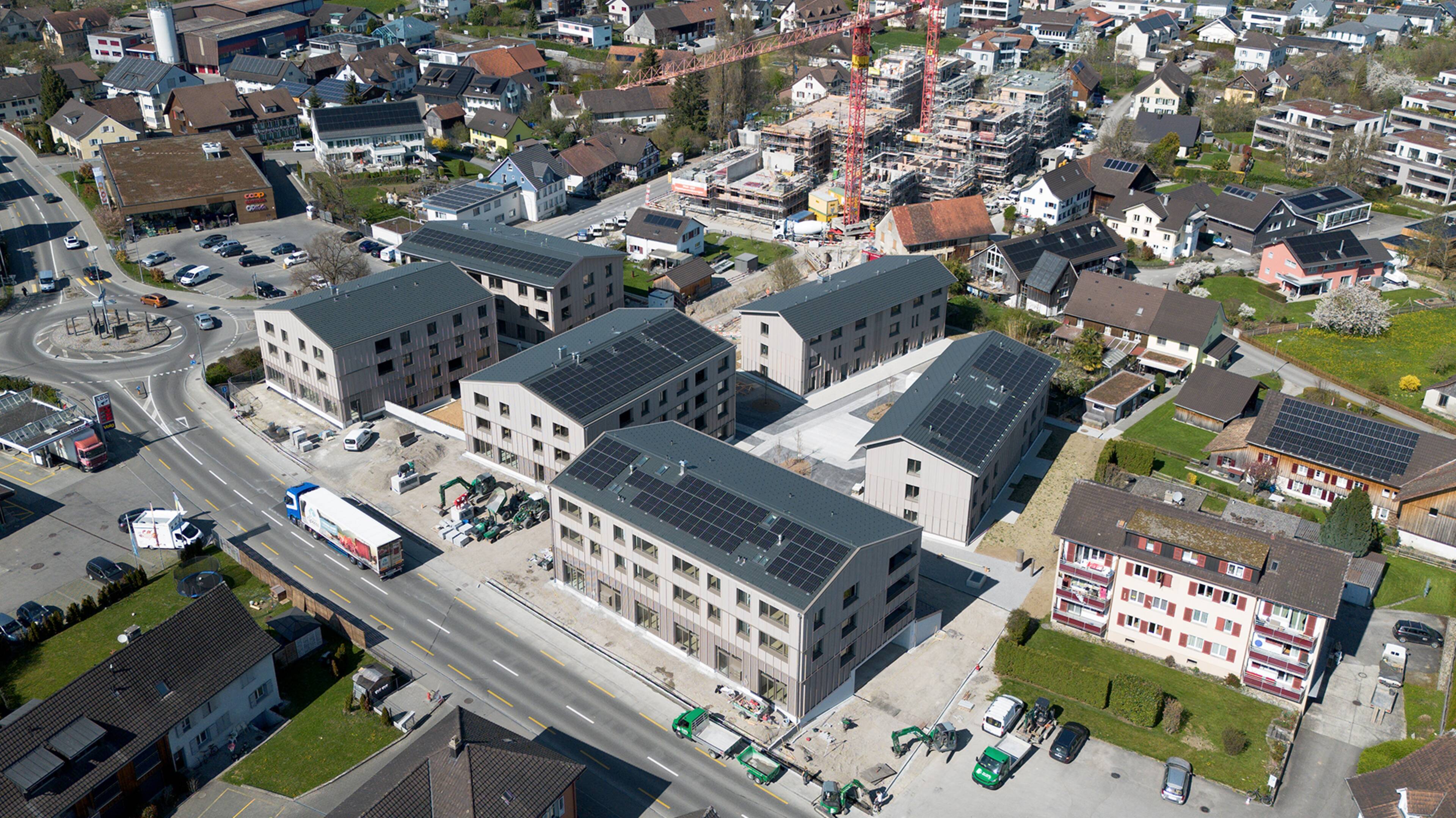In der Seegemeinde Güttingen schreitet der Bau des «Otmarhofs» zügig voran und die ersten Wohnungen sind bezugsbereit. Es entstehen sechs Neubauten mit insgesamt 18 Eigentums- und 32 Mietwohnungen. Der vielfältige Wohnungsmix reicht von kompakten 2.5-Zimmer-Wohnungen bis hin zu grosszügigen 4.5-Zimmer-Maisonettewohnungen. Auch Atelierwohnungen für eine Kombination von Wohnen und Arbeiten sind Teil des Angebots – ein Wohnkonzept für alle Generationen. Hinter dem Projekt stehen drei Eigentümerinnen – die Pensionskasse Graubünden, die Gallusberg AG und die Gemeinde Güttingen.
