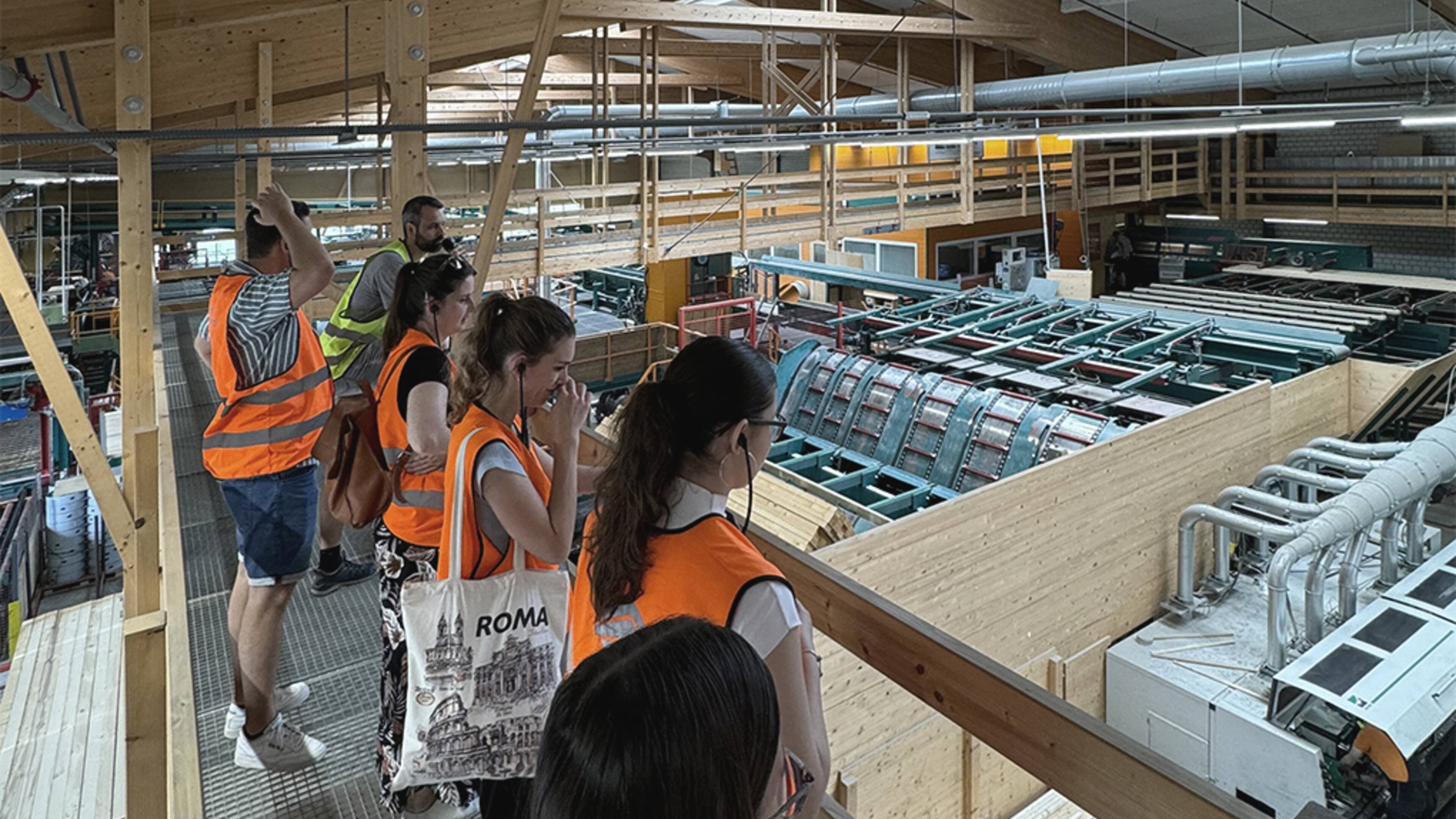 Besichtigung der Fertigungshalle der Blumer Lehmann AG in Gossau für die Produktion der Free-Form-Elemente.