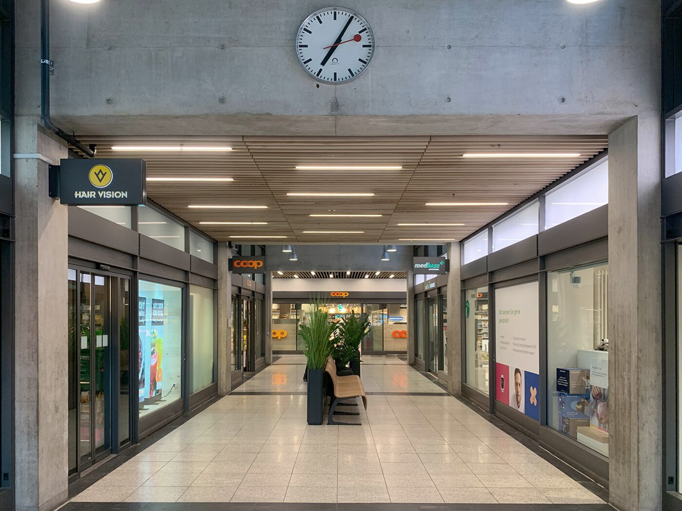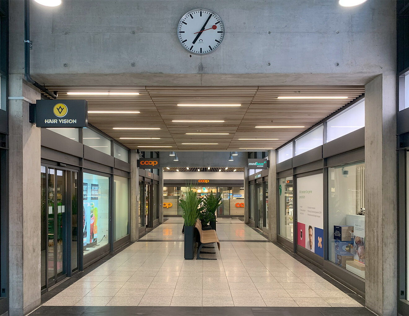 Bei beiden Standorten wurde das kommerzielle Beschriftungskonzept für die Fronten der Shops und Stechschilder vereinheitlicht und zeitgemäss gestaltet sowie ein übersichtliches Gebäudeinformationssystem realisiert. Der Bahnhof Uster erfuhr zudem eine gestalterische Aufwertung der Bahnhofpassage mit neuen Sitzmöglichkeiten und Bepflanzungen, einer hellen Holzdecke sowie einer angemessenen Beleuchtung. Die Planung und Ausführung beider Objekte erfolgte zwischen April 2023 und März 2024.