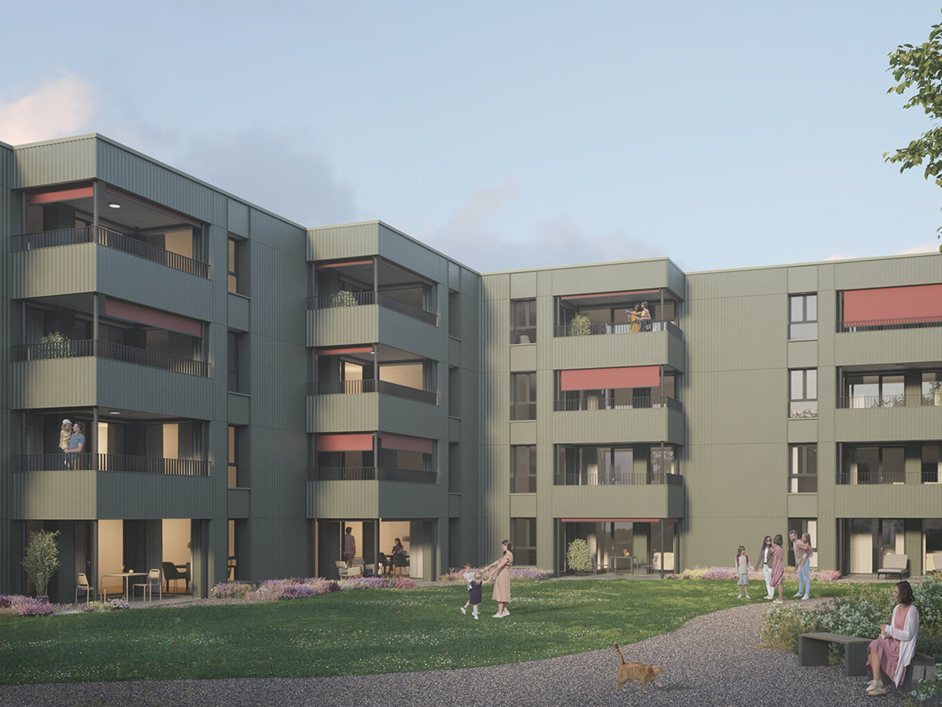 Die Erneuerung beinhaltet eine Dachaufstockung in Holzbauweise von vier zusätzlichen Wohnungen, den Ersatz und die Vergrösserung der Balkone. Die bestehende Gasheizung wird durch eine Sole-Wasser- Wärmepumpenanlage ersetzt. Im Weiteren werden die Fassaden mit einer hinterlüfteten Fassadenkonstruktion saniert sowie umfassende Innenausbauarbeiten durchgeführt. Wir zeichnen uns für die Architektur und Planung der umfangreichen Sanierung verantwortlich.