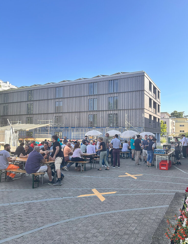 Als Dank für die geleistete Arbeit und zur Feier der erreichten Bauetappe für den Bau der Migros «Sandgrube» in Appenzell, lud die Migros Ostschweiz alle Beteiligten zur feierlichen Aufrichte ein. Die Bauarbeiten für den Neubau mit einem Migros-Supermarkt und Restaurant, 33 Mietwohnungen sowie Büro- und Gewerbeflächen läuft nach Plan. Die Eröffnung findet im Herbst 2024 statt.